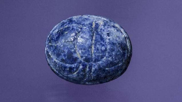 The pale color of the scarab beetle cabochon is typical of commercial-quality lapis lazuli. - Maha Tannous