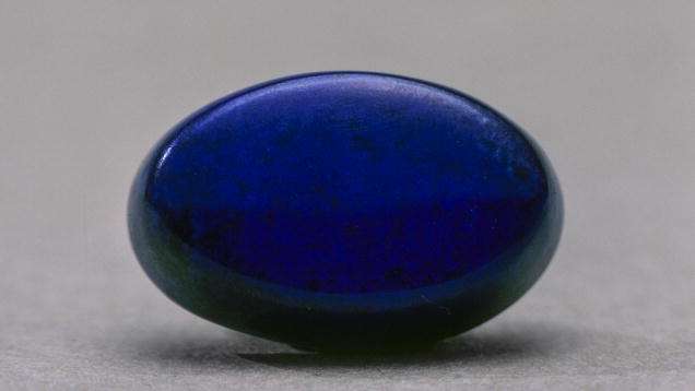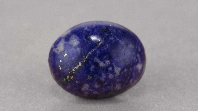 The even, deep blue color of this lapis lazuli cabochon is rare and highly prized by connoisseurs.