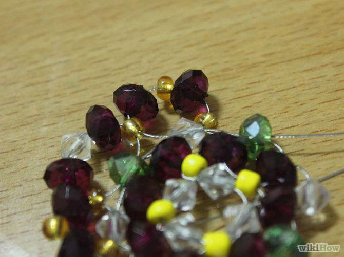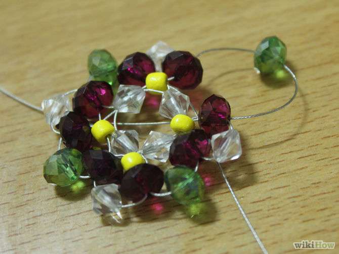 The regular beading method is: add beads on one tip, and then pass the both tips through another bead. When you come across the last group- Group 2- just thread the wire through the two pink Abacus Glass Beads and cross through an extra transparent Bicone Czech Glass Bead.