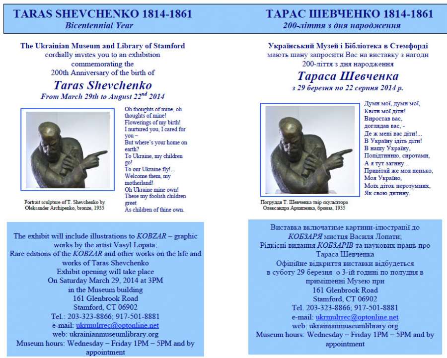 Celebrating the 75th AnniversaryThe Ukrainian Museum and Library of Stamford, the oldest cultural institution established by Ukrainians in North America is preparing to celebrate its 75th anniversary. Please honor us with your presence and thus support our work and further accomplishments in the preservation of our cultural heritage.