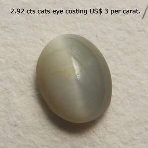 The industry designates these gemstones as quartz cat's eyes, or ruby cat's eyes etc and only the chrysoberyl gemstone can be referred to as cat's eye with no other designation.