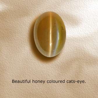 The translucent honey-yellow to greenish or brownish yellow chatoyant chrysoberyl which, when cut with a domed surface (cabochon) show a mobile streak of light are called as cymophane or cat's eye chrysoberyl. cat’s eye is a band of light that runs length wise from one end of the stone to the other. This effect is called chatoyancy.