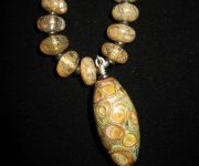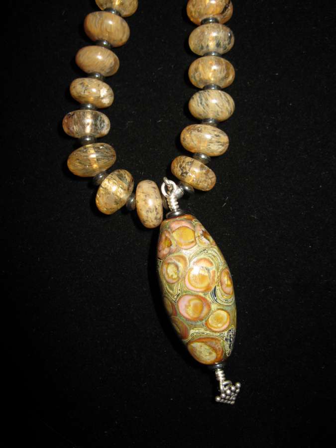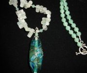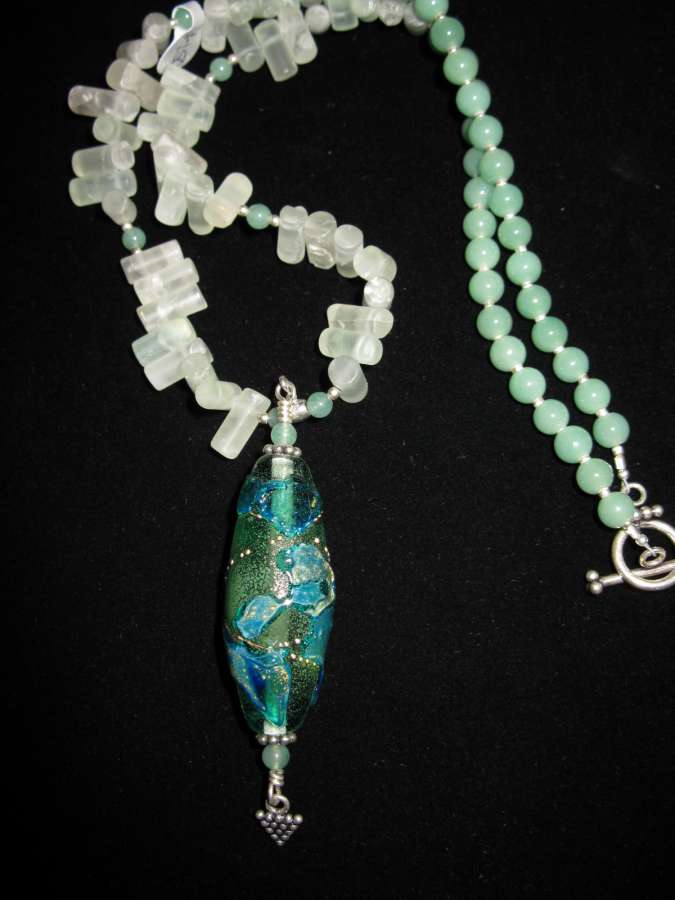 Faux turquoise necklace. I hated this bead when I first took it out of the kiln, but discovered that after etching, it looks like turquoise! A happy accident. I paired it with real turquoise.