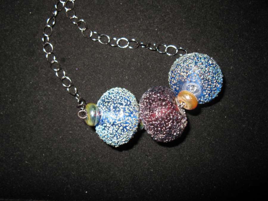 Smooth sailing fringe bracelet.. This bracelet was on the cover of Step by Step Beads magazine. I wrote two articles for the magazine, one on how to lampwork the beads and one on how to put the bracelet together.