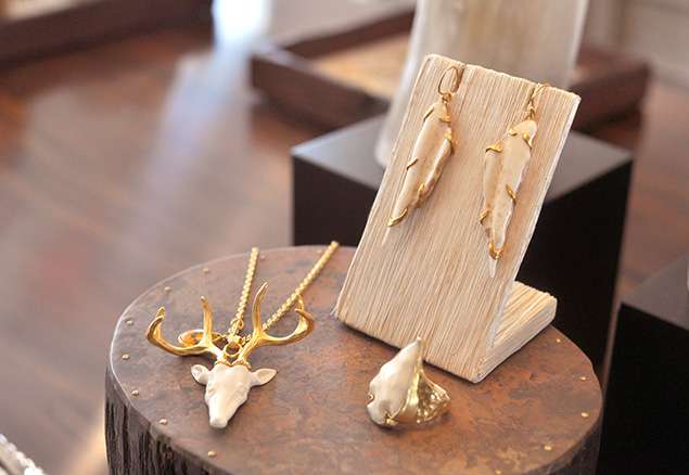 An eclectic collection of jewelry is being joined by more than 10 new lines. The new clothing nook–covered in a spotted wallpaper you’ll want as your own–with urban Calvin Rucker denim and CP Shades earthy, colorful tunics, will be joined with Christine Alcalay’s tailored pieces and Anagram by Gary Graham’s earthy separates in shades of neutral. We’re seriously excited about the goods from Rabens Saloner: pale yellow leather shorts, soft tees with tie-dye kiss prints, ankle wrap and slide sandals, kimonos, printed pants, and just a dash of sequined garb. Pieces will be easy, comfortable, and still add polish.