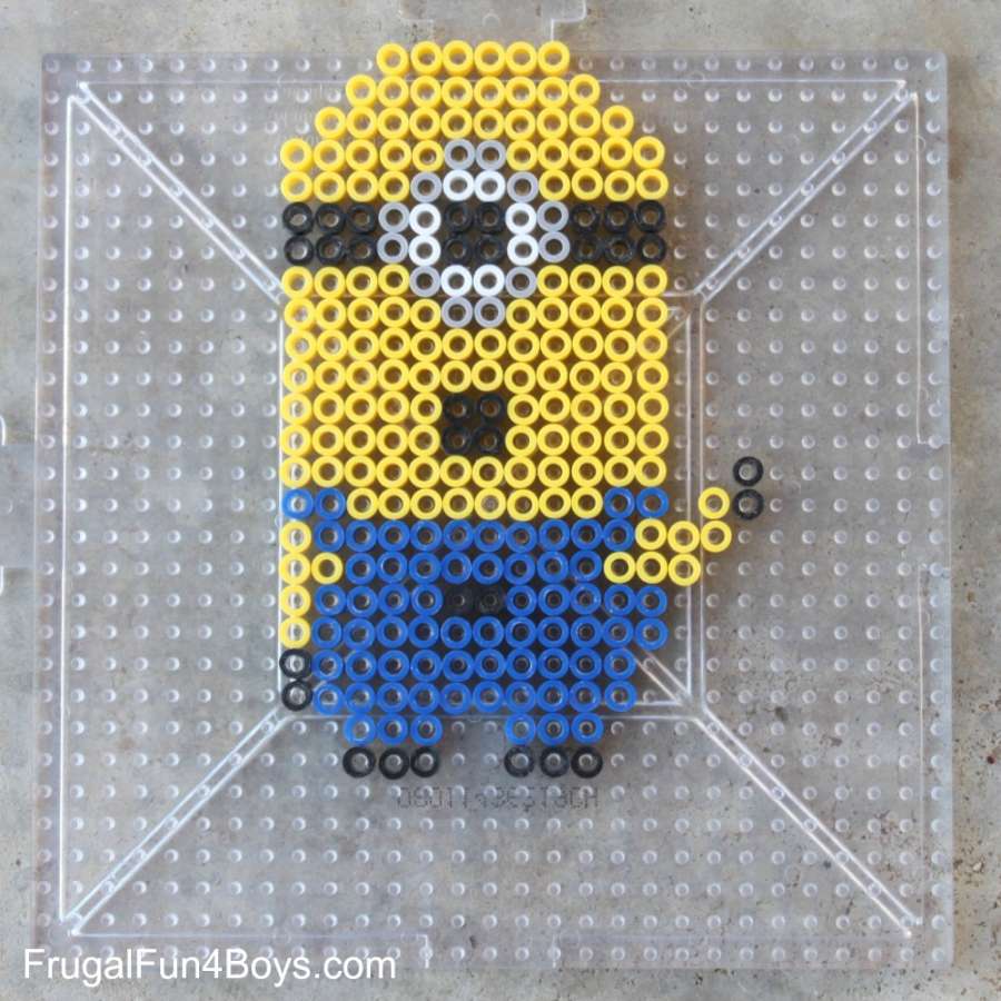 The minion below has an error! I realized that there should be two gray beads under the eye to make the bottom of the goggles. This one was my fault! (But it took me a couple days to notice, and the boys didn’t notice! I actually kind of like this shape for the eyes…)