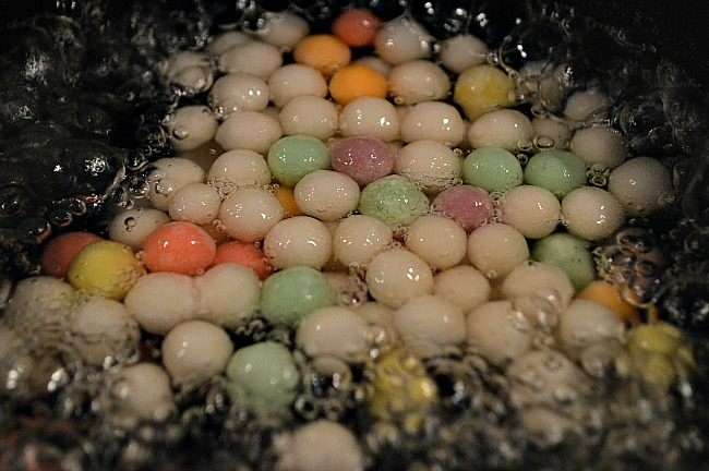 Then I followed the directions and cooked the pearls. For 1/2 cup of pearls add 5 cups of water and boil them until they start to become tender.